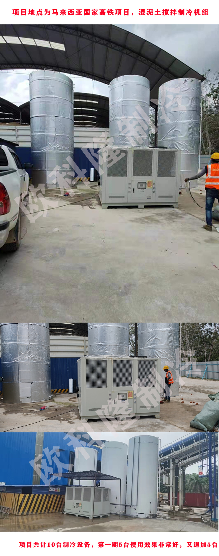 下面的案例是馬來西亞西海岸馬高鐵項目混泥土攪拌專用冷水機組項目。據(jù)了解該項目為中國交建集團承接,項目品質(zhì)要求極高,
