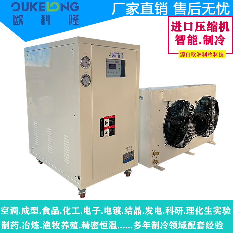 歐科隆制冷為實驗室分體式冷水機采用壓縮機與冷卻系統(tǒng)分離設(shè)計,具有以下特點:
