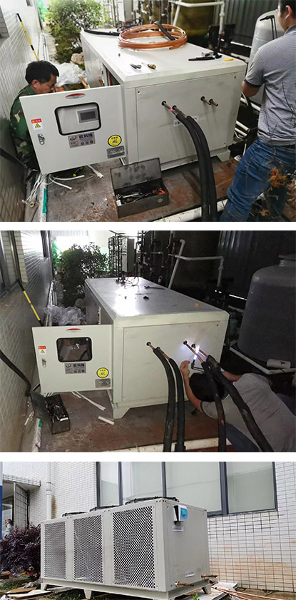 本方案為國內(nèi)某高校實(shí)驗(yàn)室使用的分體式冷水機(jī),為了便于散熱,內(nèi)外機(jī)分開放置。我方工程團(tuán)隊(duì)上門安裝調(diào)試,后續(xù)使用過程順暢得到該科研師生團(tuán)隊(duì)一致好評。